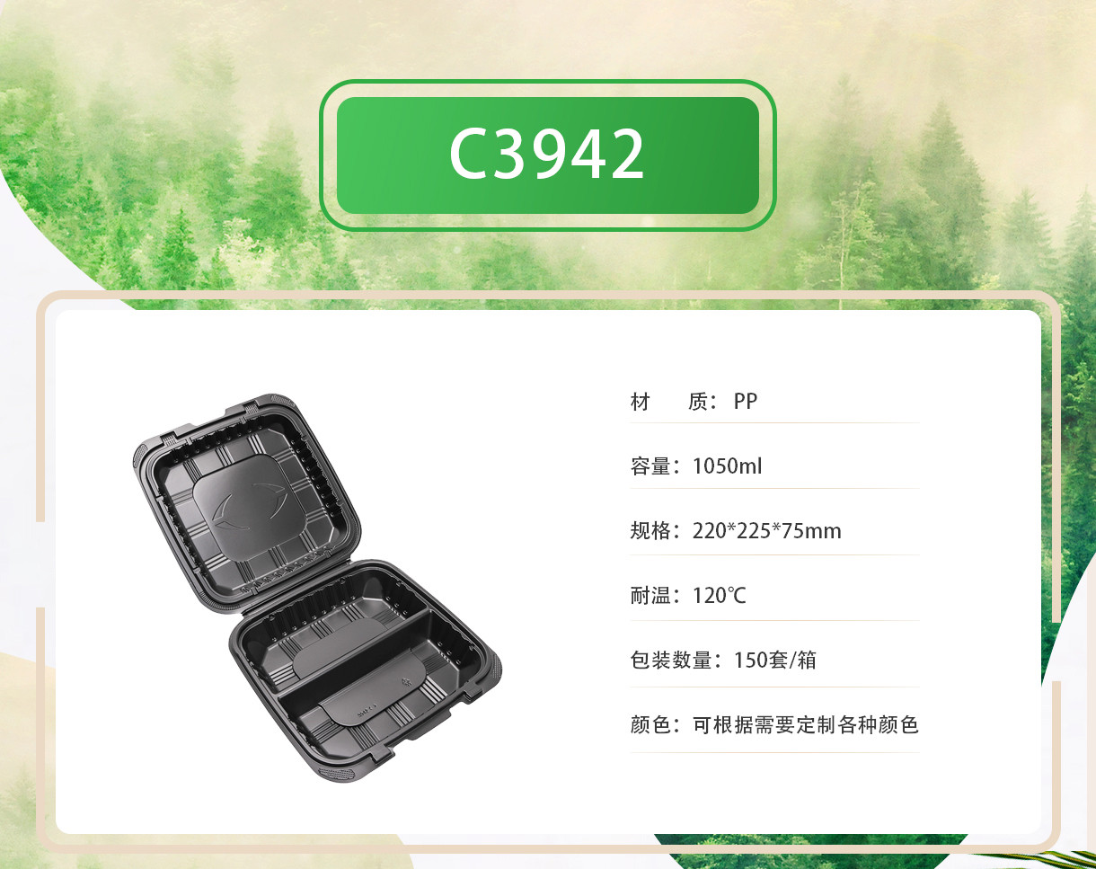 一次性pp飯盒帶蓋封口黑色方形兩格格快餐盒
